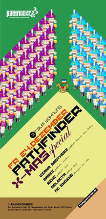 Alle Jahre wieder gibt die Crew um das Bonner Breakbeat Label PATHFINDER RECORDINGS für gewöhnlich zu Weihnachten eine Xmas Party in Bonn. Nachdem es im letzten Jahr anders lief, wird diese Tradition auf vielfachen Wunsch in diesem Jahr weiter fortgesetzt