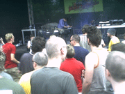 und die musik, ja was will man sagen? die warm ups versprachen ungemein aufkommende tanzwut. so knallte in der pferdegöpel der deep und hard house am nachmittag. manche bühnen ruhten bis 18.00h, andere wurden durch technische fehlleistungen im wert zurückgeworfen [bühne des elektr. tanzvergnügens a.k.a. erdbeeren-bühne] auf der matt flores mit seinem metaworld soundsystem nicht zeitig an den start kam und musik und strom von dannen schien. die ananas-bühne war zu dieser pre-festival ära fest in electro-rock hand. die rockford kabine röhrte mit lasziven posen daher, hier hiess es future electronic, dem nicht "spartengourmet" ist dies zu erklären mit einer rock-combo die entweder das schlagzeug gegen einen akai-sampler, groovebox o. ä. tauscht oder sich von analogsynthis stützen lässt.